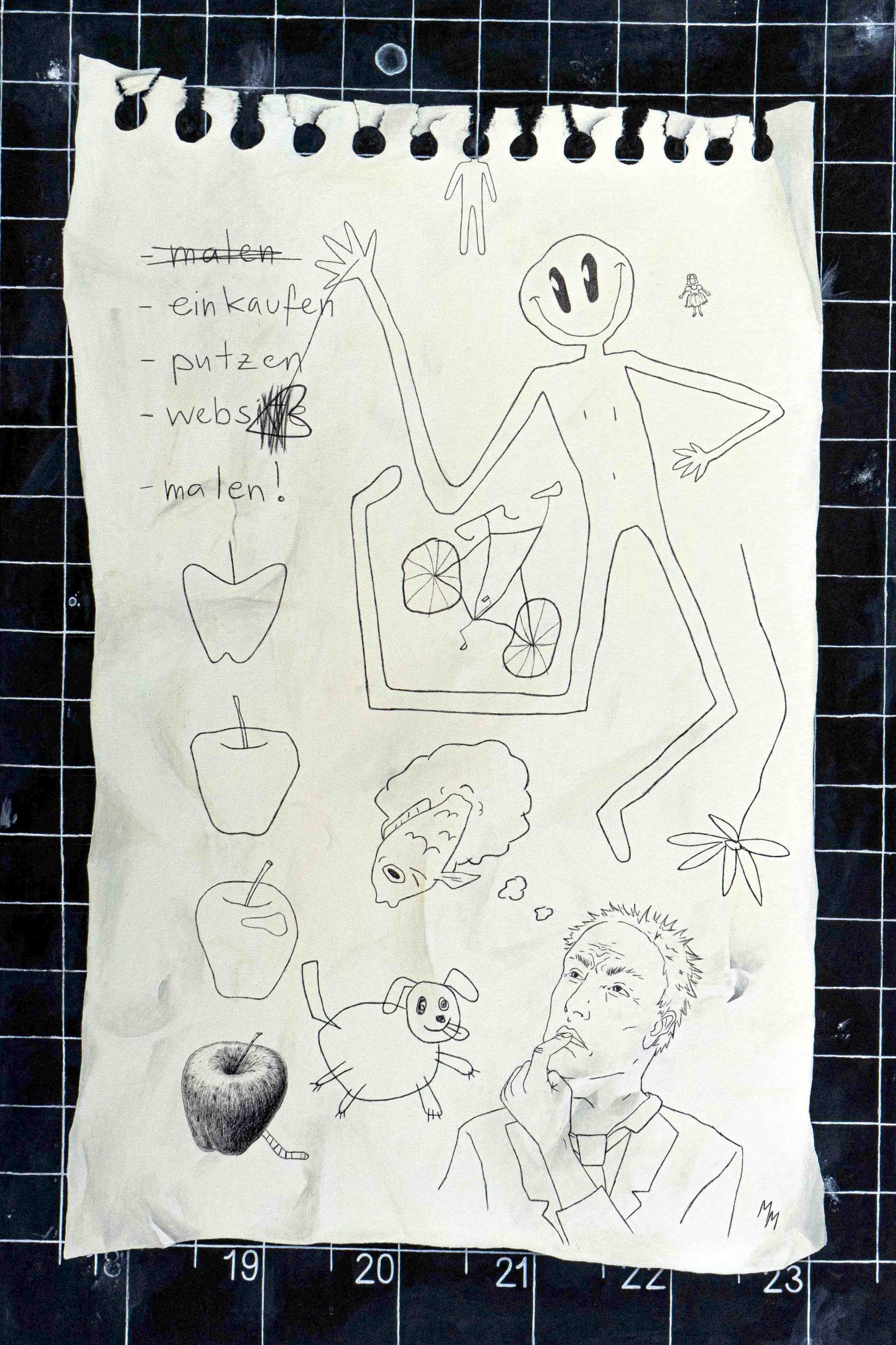 In my artistic work, I primarily use acrylic paints, ballpoint pens, and permanent markers. I am fascinated by the representation of complex content, situations, and emotions in an abstract, simplified form. The medium used is secondary. It serves as a means to an end, giving seemingly fleeting moments a permanent form in my art.